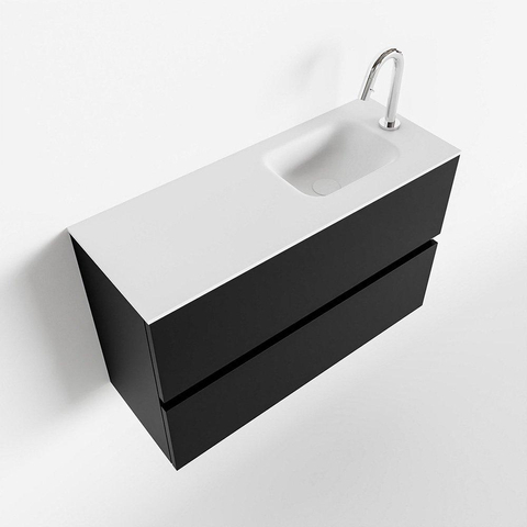 MONDIAZ ADA Toiletmeubel - 80x30x50cm - 1 kraangat - 2 lades - urban mat - wasbak rechts - Solid surface - Wit