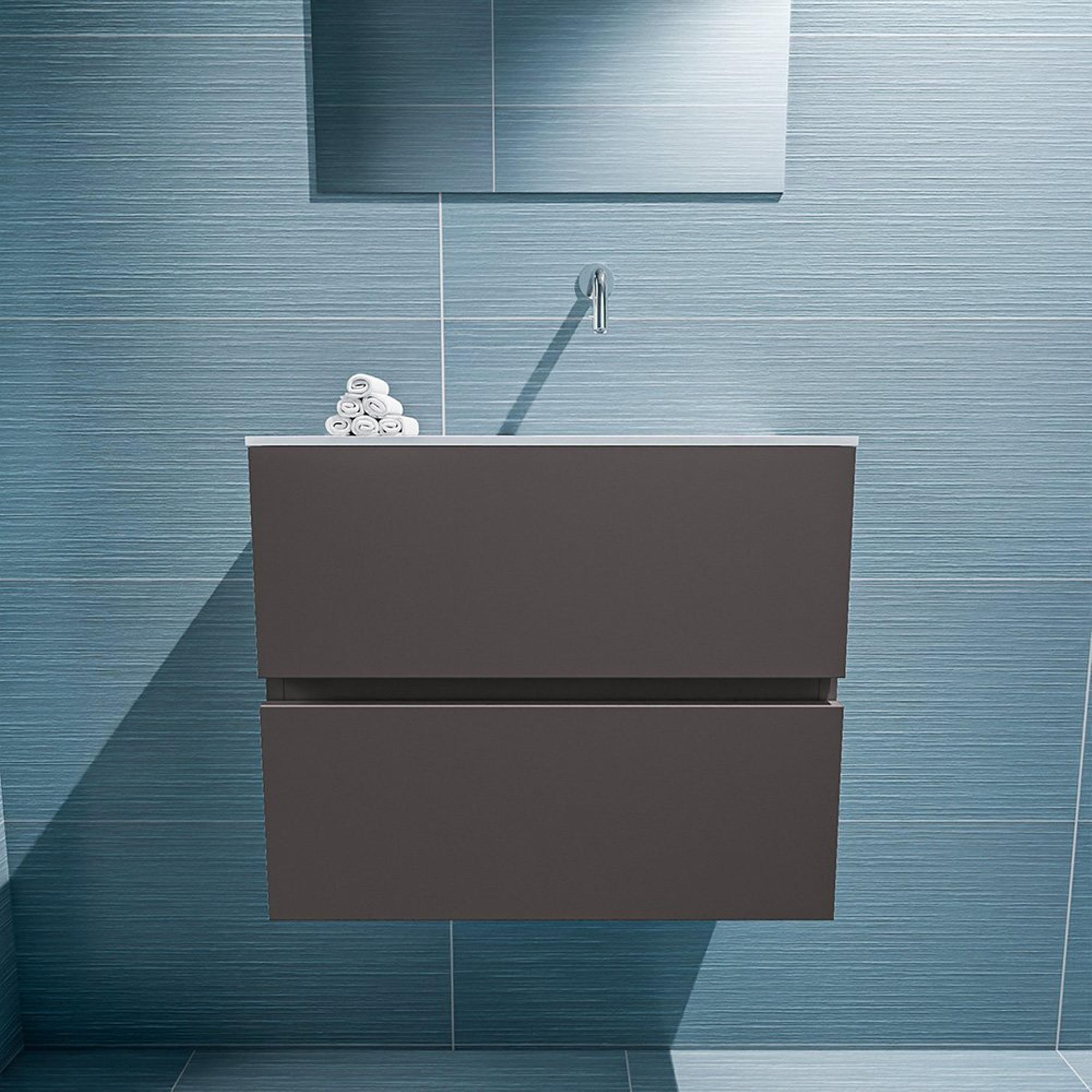 Dit MONDIAZ ADA toiletmeubel straalt pure luxe uit. De donkergrijze matte afwerking geeft het meubel een moderne uitstraling, terwijl het Solid Surface materiaal zorgt voor duurzaamheid en een luxe uitstraling. De subtiele details en strakke lijnen van het ontwerp maken dit meubel een echte blikvanger in elke badkamer.