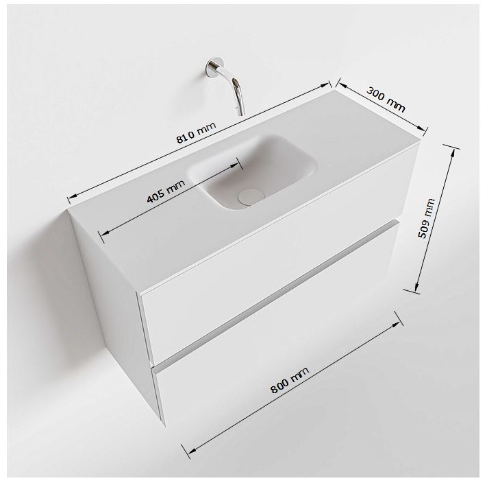 Het gebruik van Solid surface en de strakke witte kleur geven dit toiletmeubel een eigentijdse uitstraling. Het design is minimalistisch en past perfect bij een moderne badkamerinrichting.