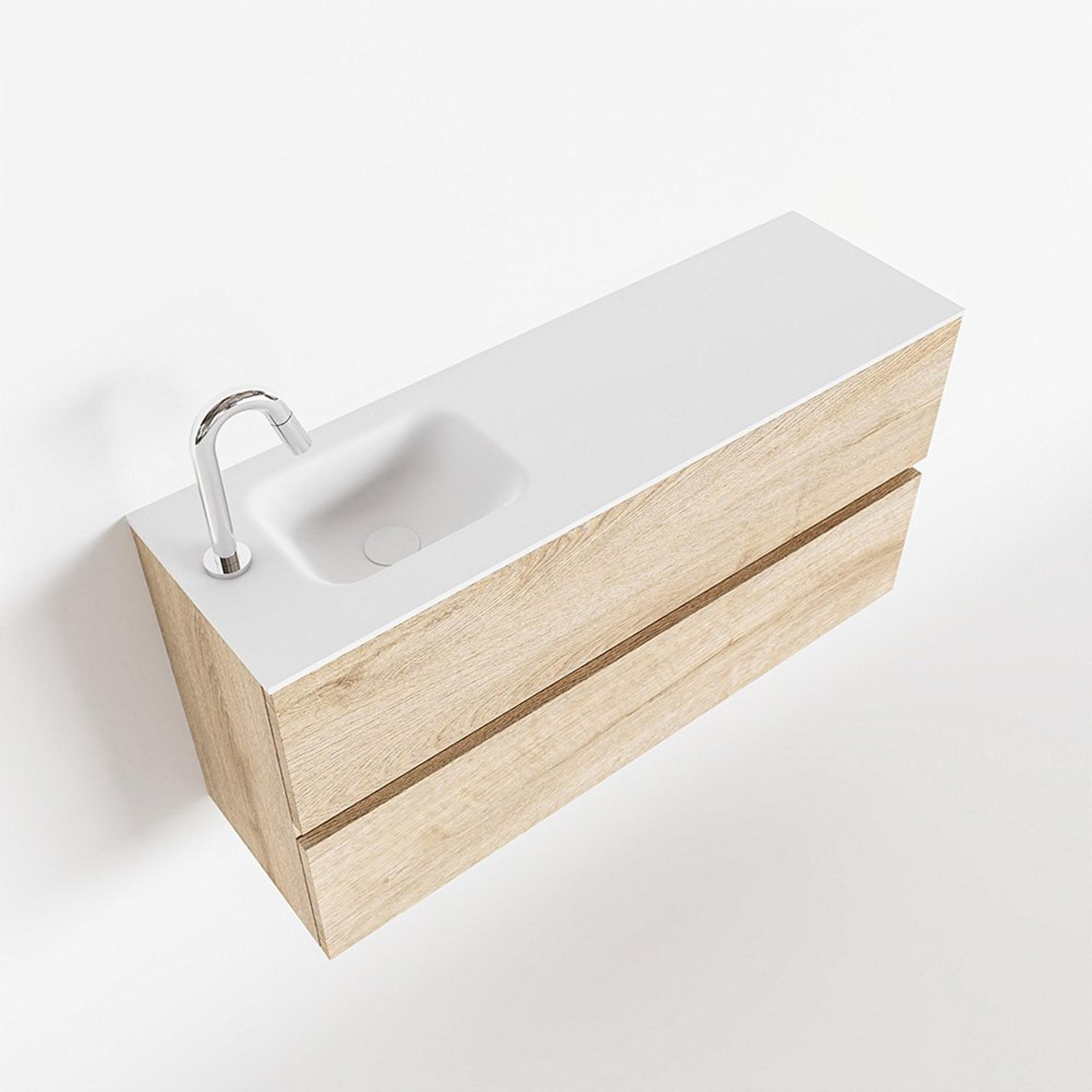 MONDIAZ ADA Toiletmeubel - 100x30x50cm - 1 kraangat - 2 lades - washed oak mat - wasbak links - Solid surface - Wit
