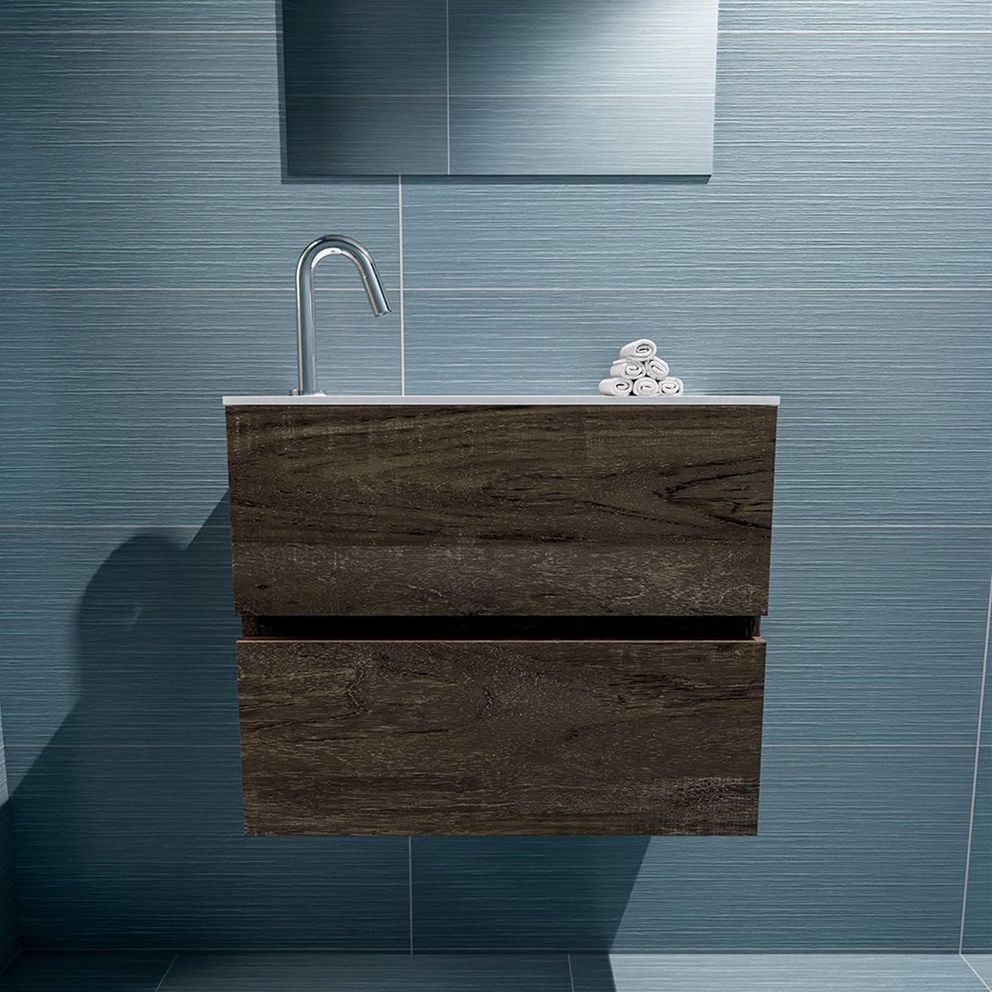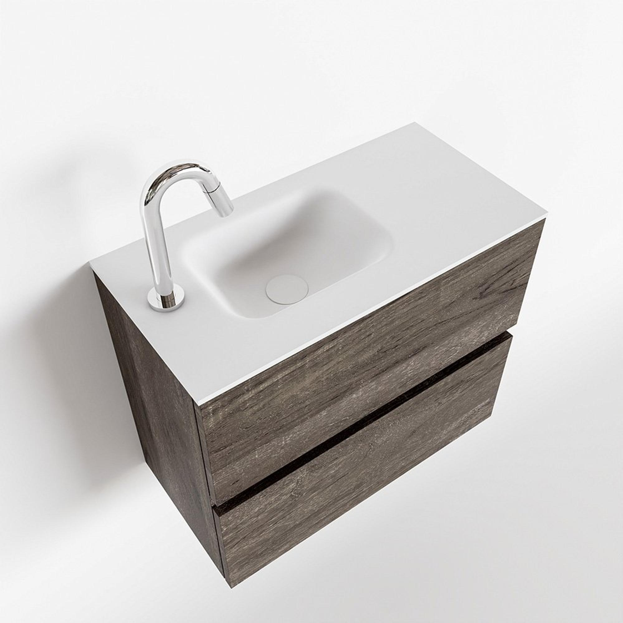 MONDIAZ ADA Toiletmeubel - 60x30x50cm - 1 kraangat - 2 lades - dark brown mat - wasbak links - Solid surface - Wit