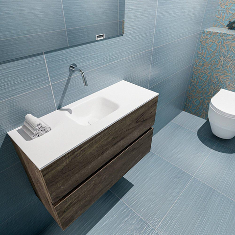 MONDIAZ ADA Toiletmeubel - 80x30x50cm - 0 kraangaten - 2 lades - dark brown mat - wasbak midden - Solid surface - Wit