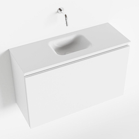MONDIAZ OLAN Fonteinset - 80x30x40cm - 0 kraangaten - 1 lade - talc mat - wasbak midden - Solid Surface Wit