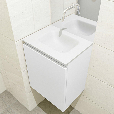 MONDIAZ OLAN Fonteinset - 40x30x40cm - 0 kraangaten - 1 lade - talc mat - wasbak midden - Solid Surface Wit