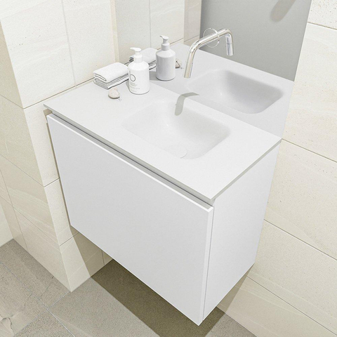 MONDIAZ OLAN Fonteinset - 60x30x40cm - 0 kraangaten - 1 lade - talc mat - wasbak rechts - Solid Surface Wit