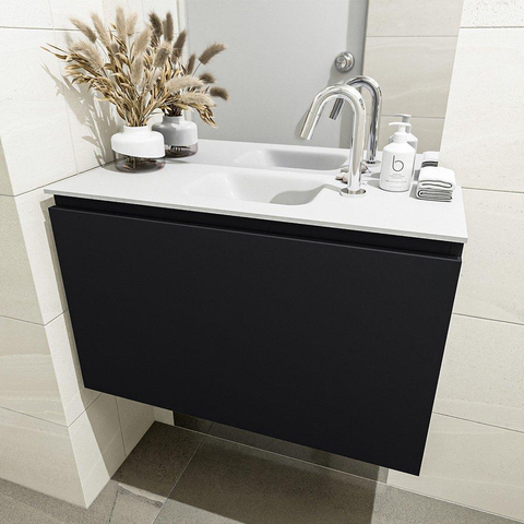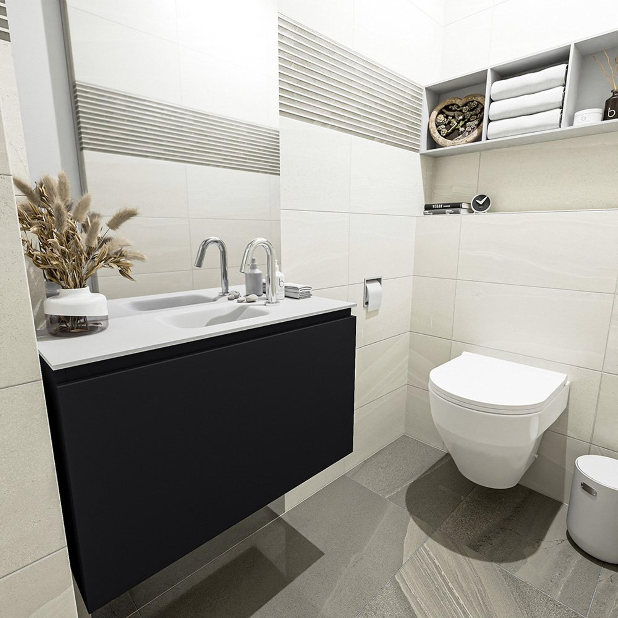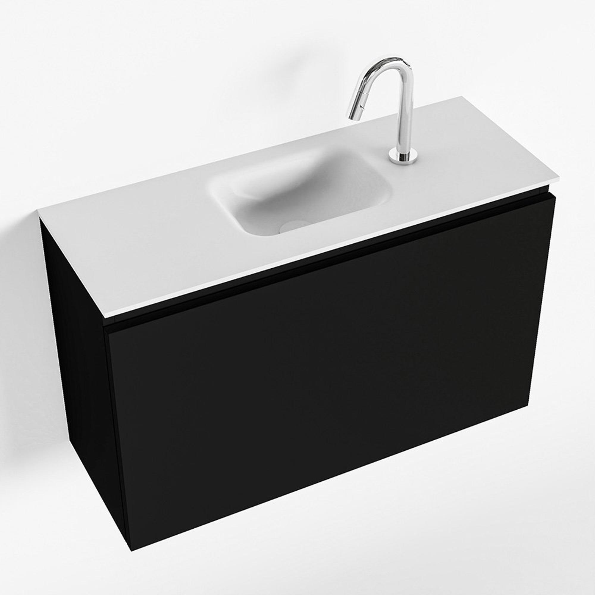 MONDIAZ OLAN Fonteinset - 80x30x40cm - 1 kraangat - 1 lade - urban mat - wasbak midden - Solid Surface Wit