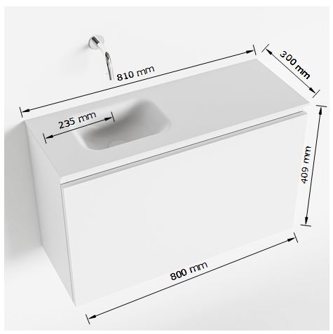 MONDIAZ OLAN Fonteinset - 80x30x40cm - 1 kraangat - 1 lade - army mat - wasbak links - Solid Surface Wit