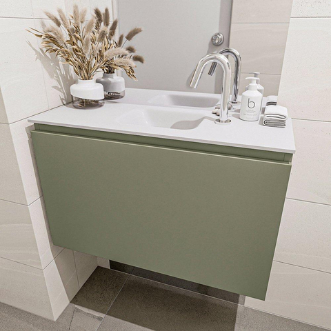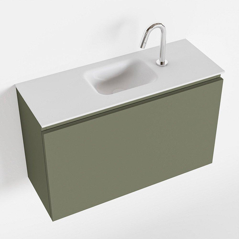 MONDIAZ OLAN Fonteinset - 80x30x40cm - 1 kraangat - 1 lade - army mat - wasbak midden - Solid Surface Wit