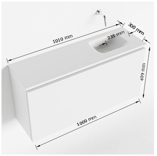 MONDIAZ OLAN Fonteinset - 100x30x40cm - 1 kraangat - 1 lade - linen mat - wasbak rechts - Solid Surface Wit