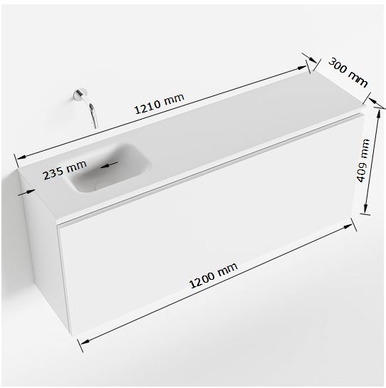MONDIAZ OLAN Fonteinset - 120x30x40cm - 1 kraangat - 1 lade - washed oak mat - wasbak links - Solid Surface Wit