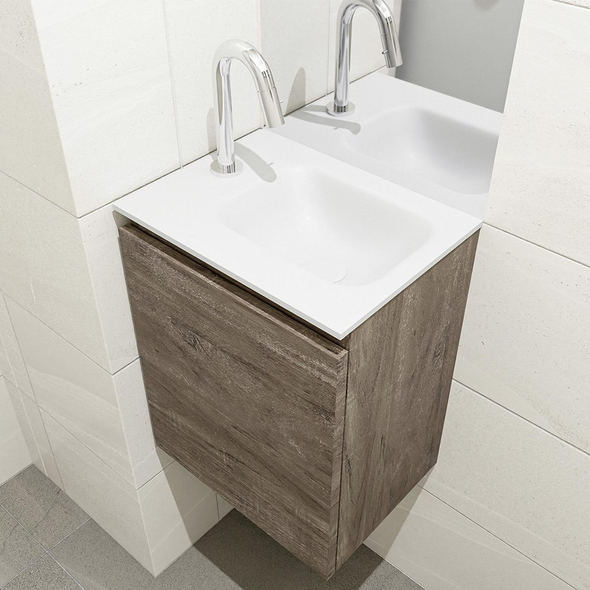 MONDIAZ OLAN Fonteinset - 40x30x40cm - 1 kraangat - 1 lade - dark brown mat - wasbak rechts - Solid Surface Wit