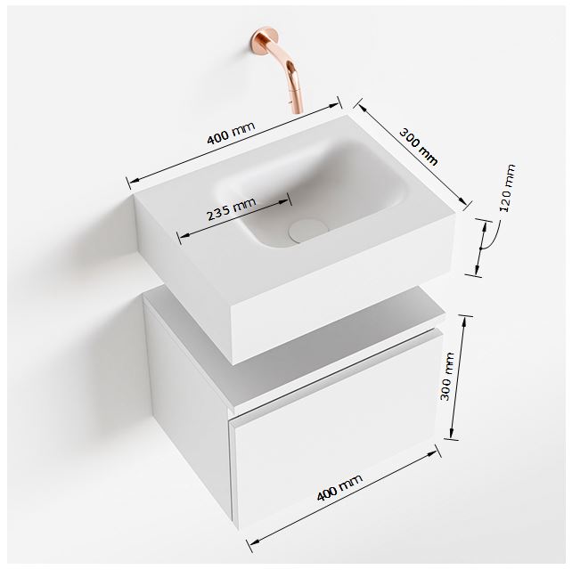 Naast zijn esthetische waarde is dit toiletmeubel ook uiterst functioneel. De afmetingen van 40x30x30cm maken het compact en praktisch, ideaal voor kleine badkamers of gastentoiletten. Het solide oppervlak zorgt voor duurzaamheid en eenvoudig onderhoud, terwijl de afwezigheid van kraangaten een strakke en minimalistische uitstraling creëert.