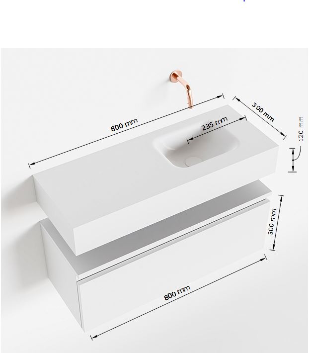 Naast zijn esthetische waarde is de MONDIAZ ANDOR ook zeer functioneel. Met 1 lade biedt het voldoende opbergruimte voor handdoeken, toiletartikelen en andere benodigdheden. De wasbak aan de rechterkant zorgt voor een efficiënte indeling van de ruimte, waardoor u optimaal gebruik kunt maken van de beschikbare ruimte in uw badkamer.
