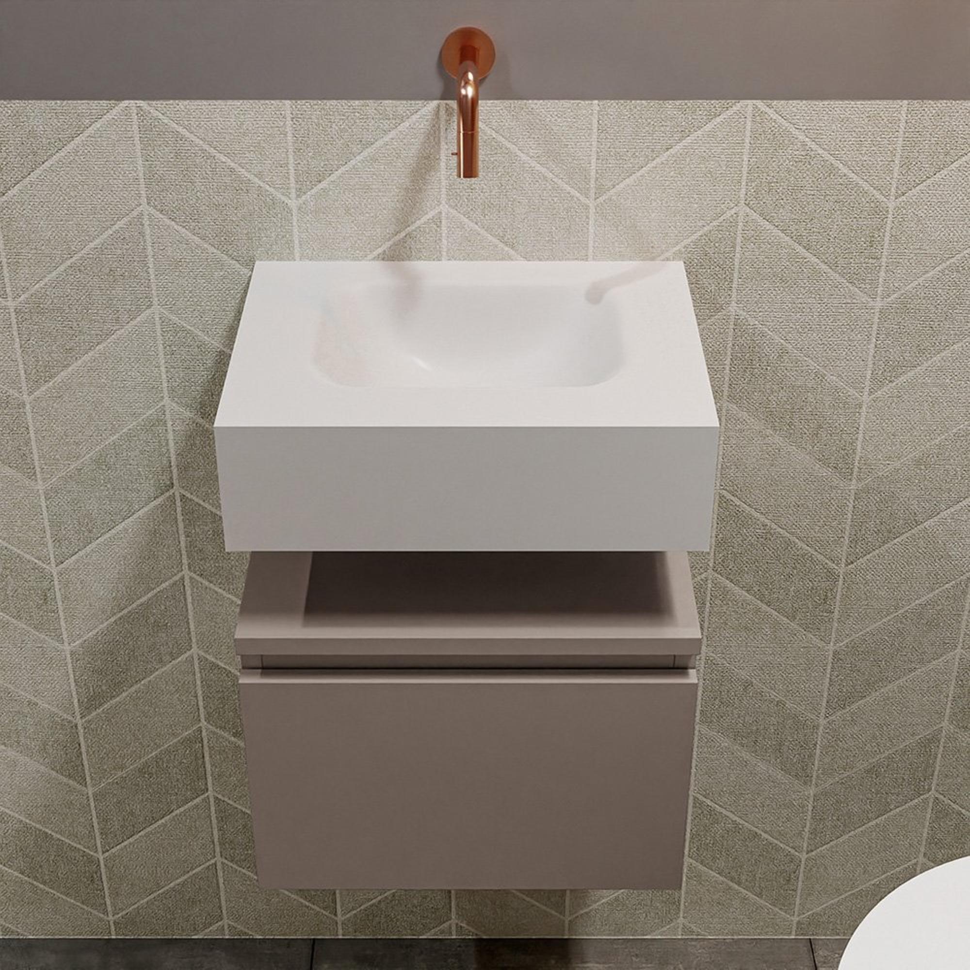 MONDIAZ ANDOR Toiletmeubel - 40x30x30cm - 0 kraangaten - 1 lades - smoke mat - wasbak midden - Solid surface - Wit