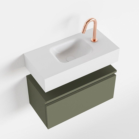 MONDIAZ ANDOR Toiletmeubel - 60x30x30cm - 1 kraangat - 1 lades - army mat - wasbak midden - Solid surface - Wit