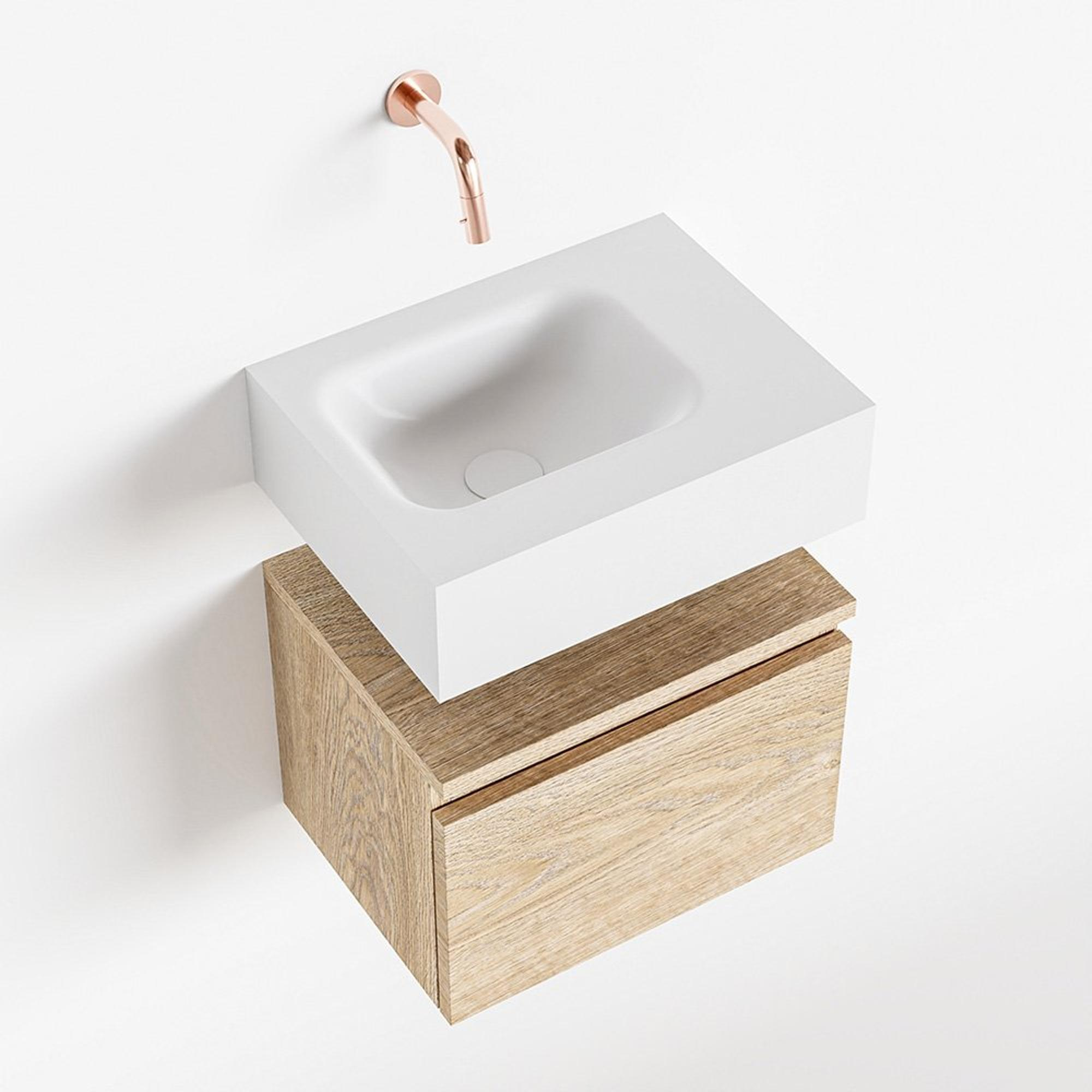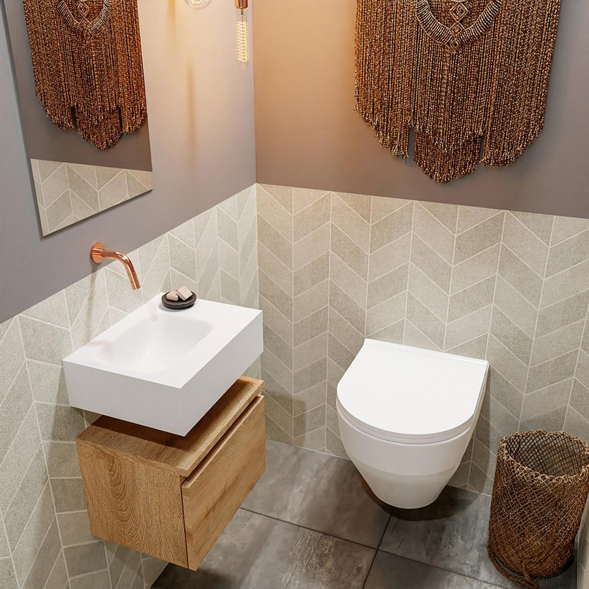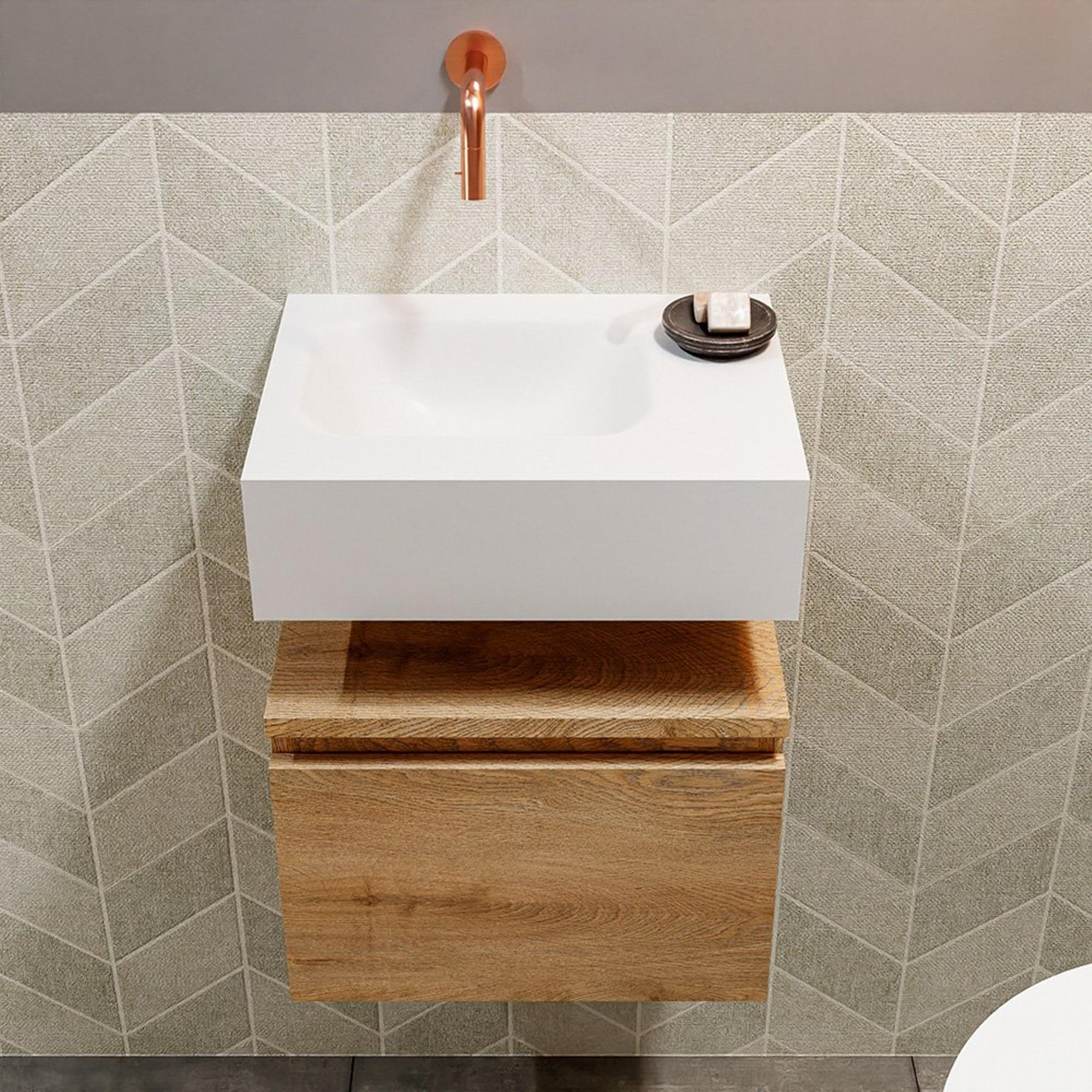 MONDIAZ ANDOR Toiletmeubel - 40x30x30cm - 0 kraangaten - 1 lades - washed oak mat - wasbak links - Solid surface - Wit