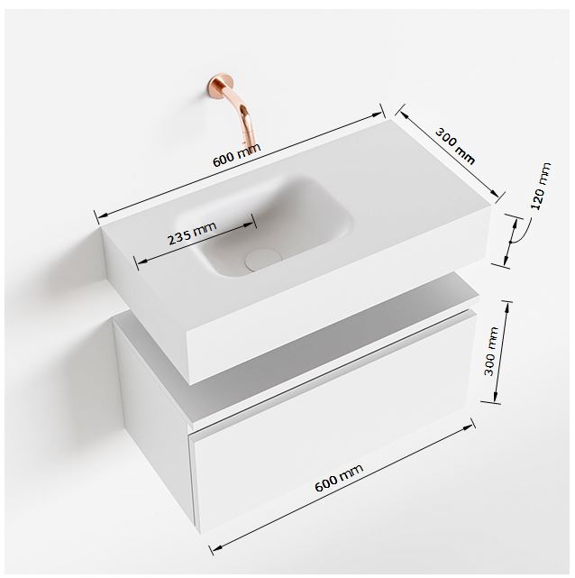 Ondanks zijn elegante uitstraling is het MONDIAZ ANDOR Toiletmeubel zeer functioneel. Met 1 lade biedt het voldoende opbergruimte voor handdoeken, toiletartikelen en andere benodigdheden. De wasbak aan de linkerkant zorgt voor een efficiënt gebruik van de ruimte, terwijl de afmetingen van 60x30x30cm ervoor zorgen dat dit meubel zelfs in kleinere badkamers past.