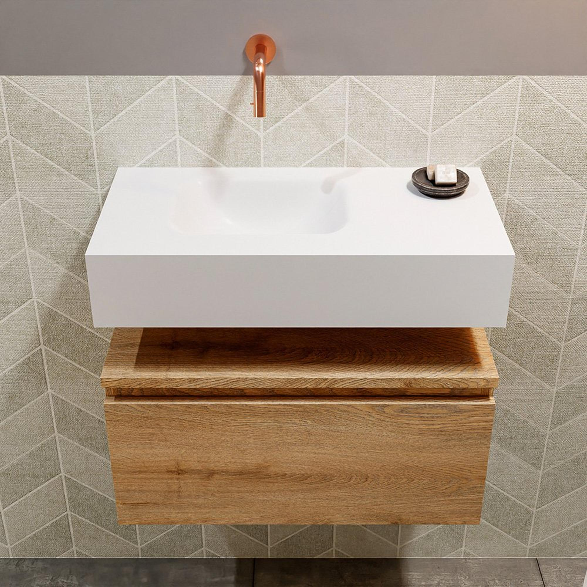 - Washed oak mat en witte Solid surface wasbak