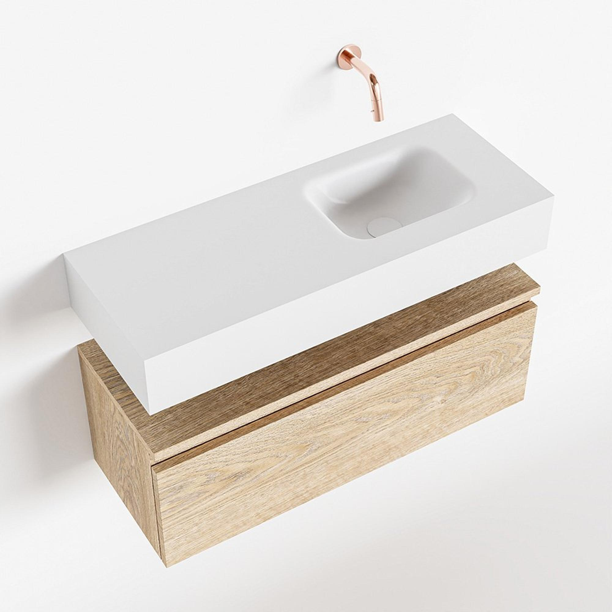 MONDIAZ ANDOR Toiletmeubel - 80x30x30cm - 0 kraangaten - 1 lades - washed oak mat - wasbak rechts - Solid surface - Wit