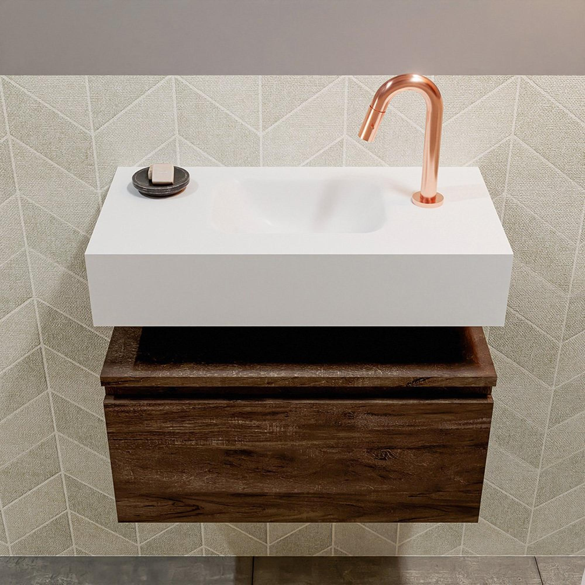 MONDIAZ ANDOR Toiletmeubel - 60x30x30cm - 1 kraangat - 1 lades - dark brown mat - wasbak midden - Solid surface - Wit