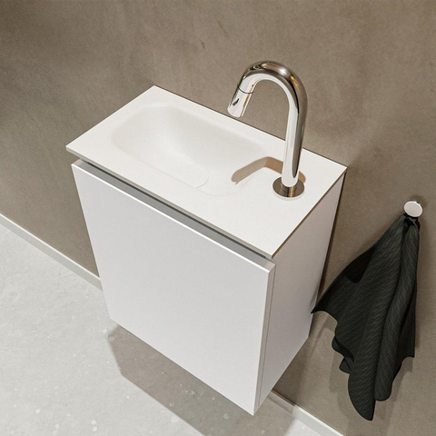 MONDIAZ TURE Fonteinset - 40x23x50cm - 1 kraangat - 1 deur - talc mat - Wasbak links - Solid Surface Wit