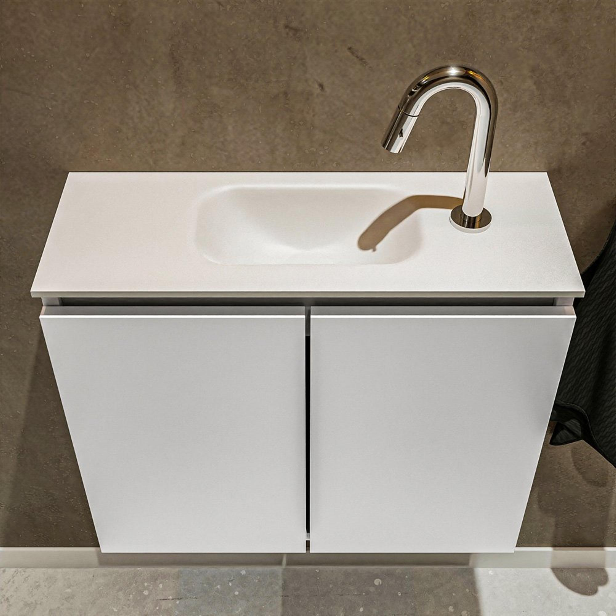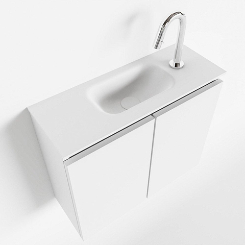 MONDIAZ TURE Fonteinset - 60x23x50cm - 1 kraangat - 2 deuren - talc mat - Wasbak midden - Solid Surface Wit