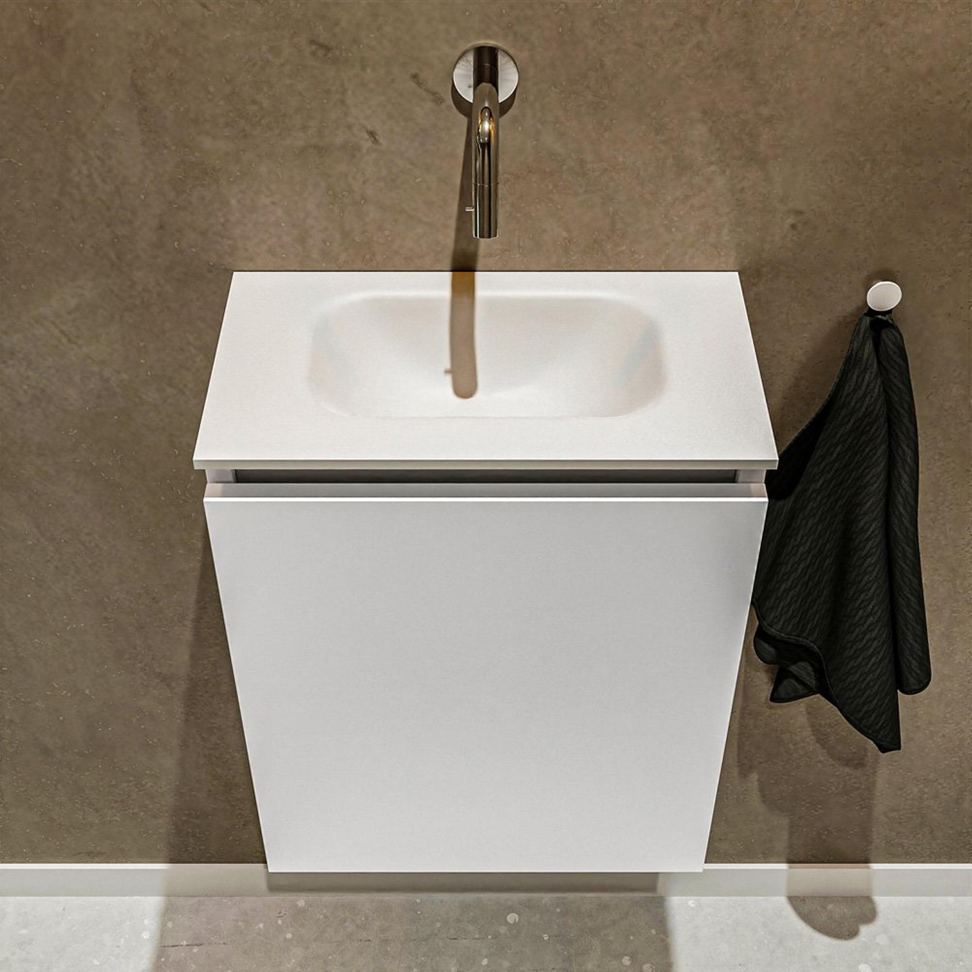 MONDIAZ TURE Fonteinset - 40x23x50cm - 0 kraangaten - 1 deur - talc mat - Wasbak midden - Solid Surface Wit