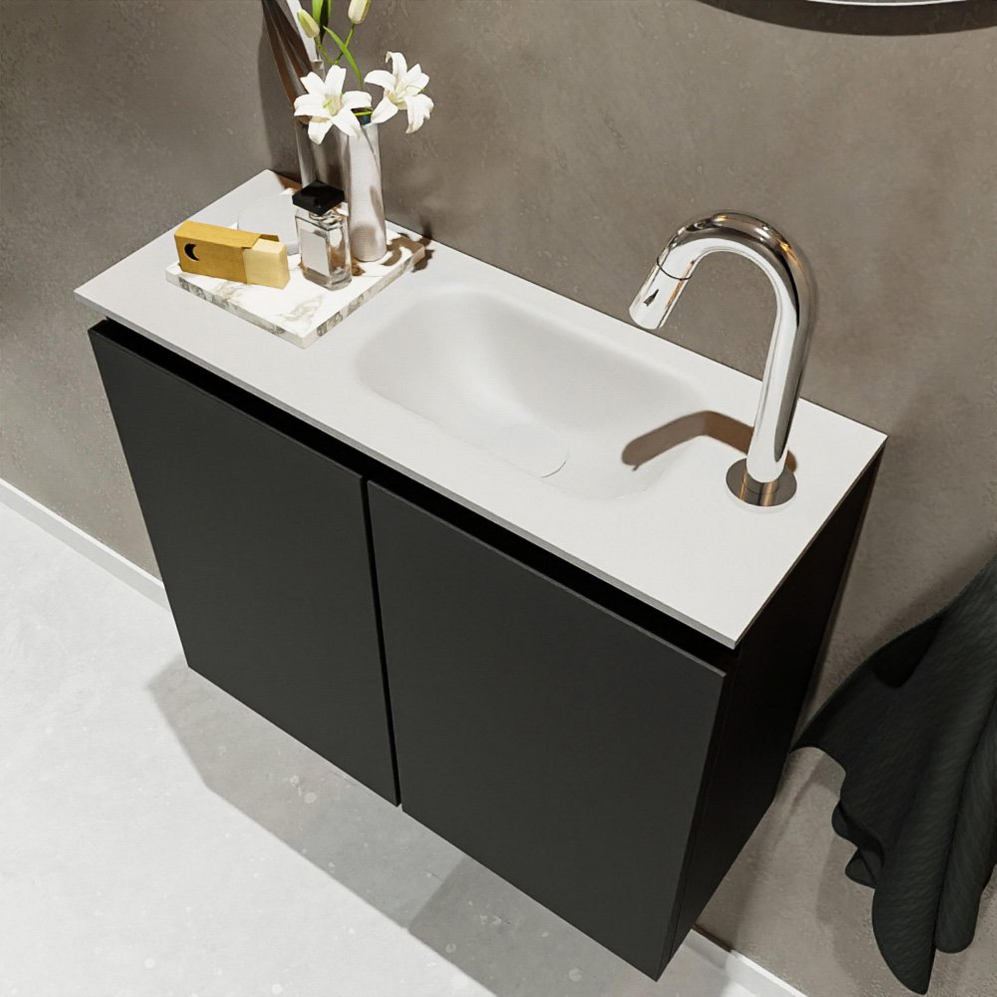 MONDIAZ TURE Fonteinset - 60x23x50cm - 1 kraangat - 2 deuren - urban mat - Wasbak rechts - Solid Surface Wit