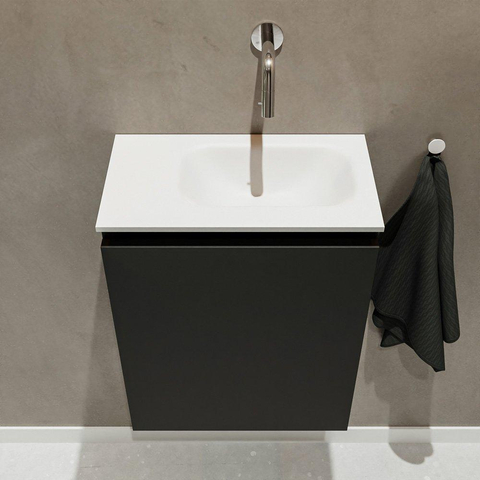 MONDIAZ TURE Fonteinset - 40x23x50cm - 0 kraangaten - 1 deur - urban mat - Wasbak rechts - Solid Surface Wit