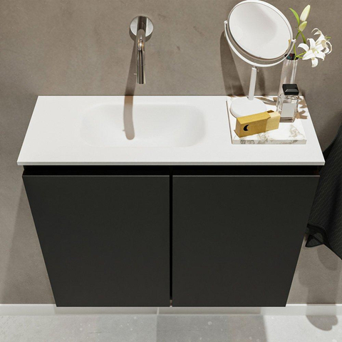 MONDIAZ TURE Fonteinset - 60x23x50cm - 0 kraangaten - 2 deuren - urban mat - Wasbak links - Solid Surface Wit