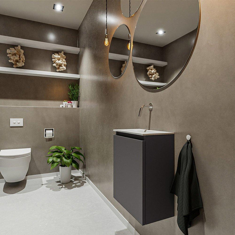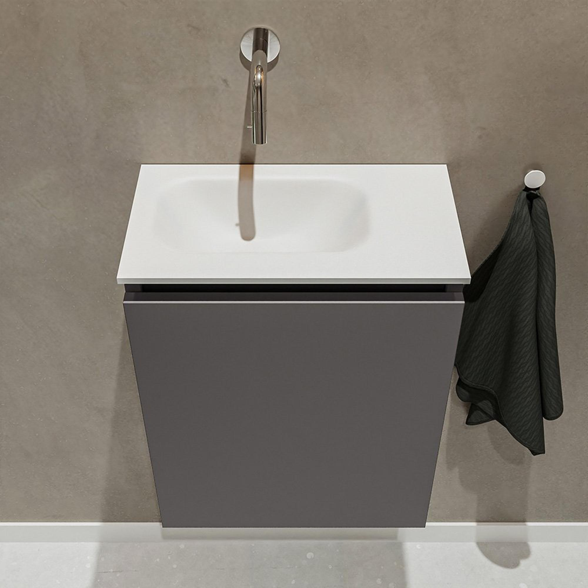 MONDIAZ TURE Fonteinset - 40x23x50cm - 0 kraangaten - 1 deur - darkgrey mat - Wasbak links - Solid Surface Wit