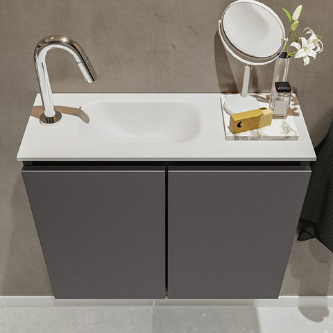 MONDIAZ TURE Fonteinset - 60x23x50cm - 1 kraangat - 2 deuren - darkgrey mat - Wasbak links - Solid Surface Wit
