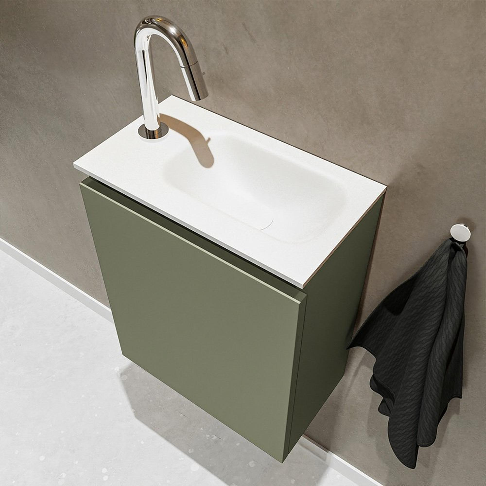MONDIAZ TURE Fonteinset - 40x23x50cm - 1 kraangat - 1 deur - army mat - Wasbak rechts - Solid Surface Wit