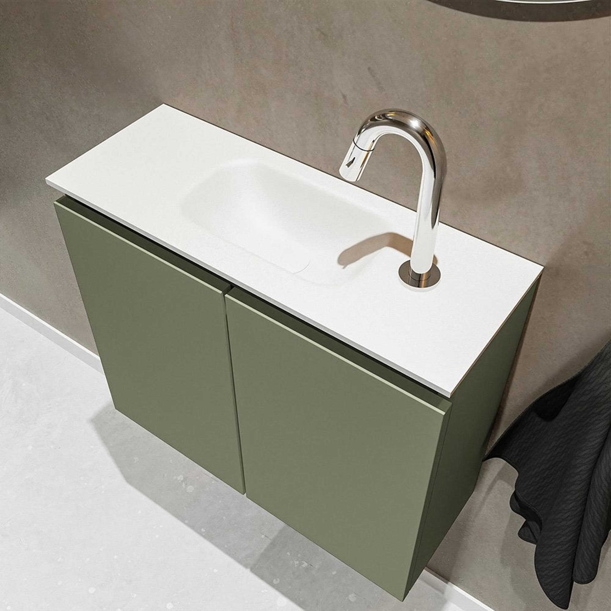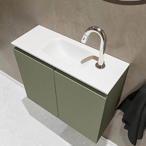MONDIAZ TURE Fonteinset - 60x23x50cm - 1 kraangat - 2 deuren - army mat - Wasbak midden - Solid Surface Wit