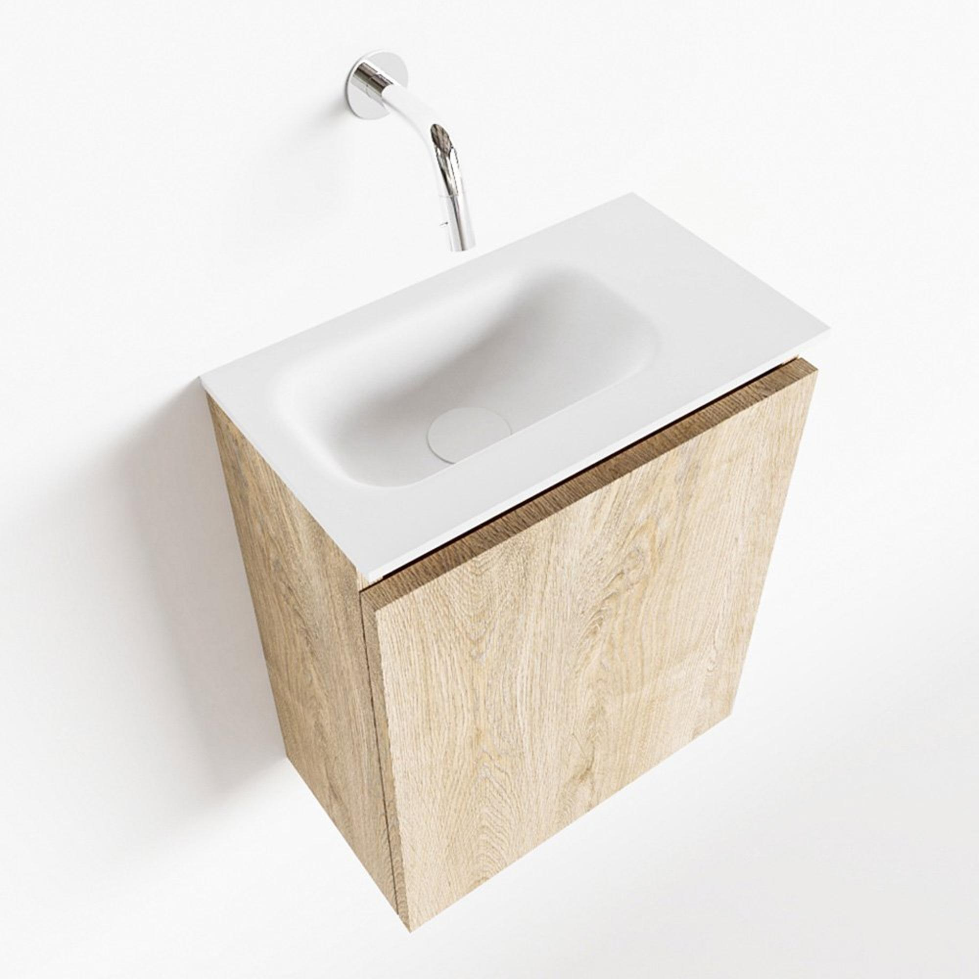 MONDIAZ TURE Fonteinset - 40x23x50cm - 0 kraangaten - 1 deur - washed oak mat - Wasbak links - Solid Surface Wit