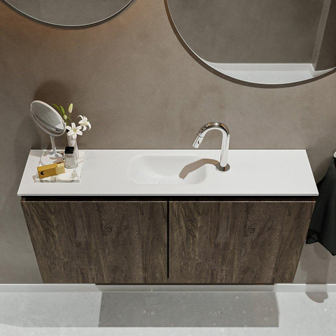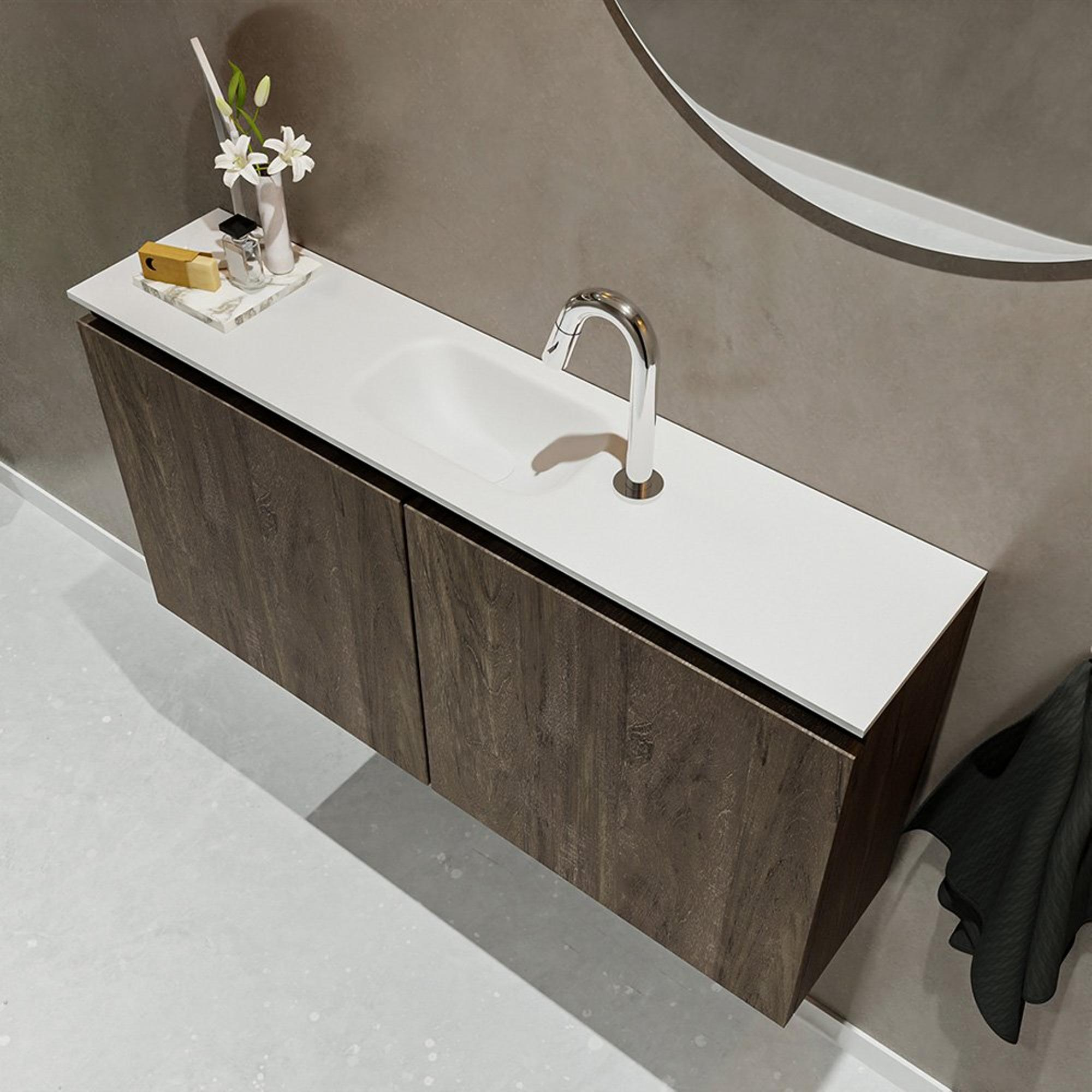 MONDIAZ TURE Fonteinset - 100x23x50cm - 1 kraangat - 2 deuren - dark brown mat - Wasbak midden - Solid Surface Wit