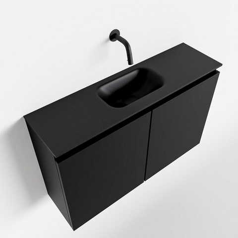 MONDIAZ TURE Fonteinset - 80x23x50cm - 0 kraangaten - 2 deuren - urban mat - Wasbak midden - Solid Surface Zwart