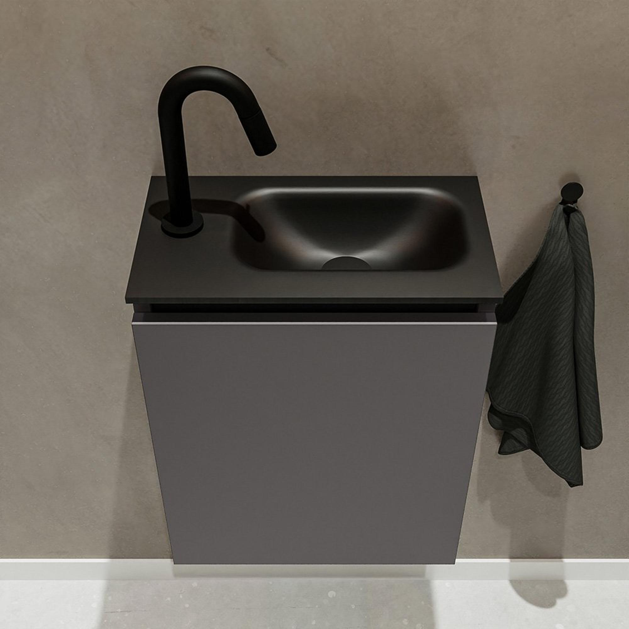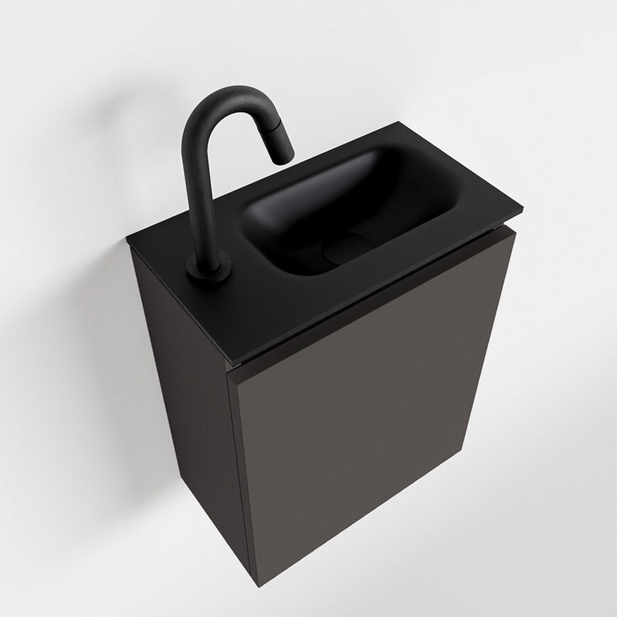 MONDIAZ TURE Fonteinset - 40x23x50cm - 1 kraangat - 1 deur - darkgrey mat - Wasbak rechts - Solid Surface Zwart