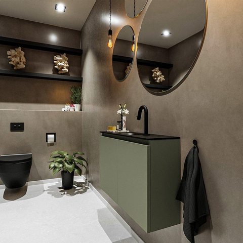 MONDIAZ TURE Fonteinset - 80x23x50cm - 1 kraangat - 2 deuren - army mat - Wasbak midden - Solid Surface Zwart