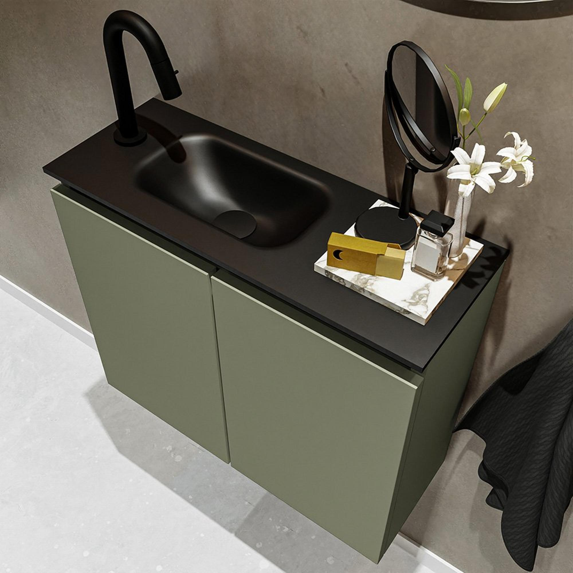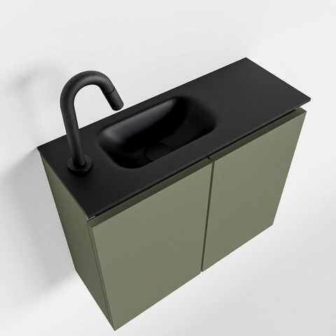 MONDIAZ TURE Fonteinset - 60x23x50cm - 1 kraangat - 2 deuren - army mat - Wasbak links - Solid Surface Zwart