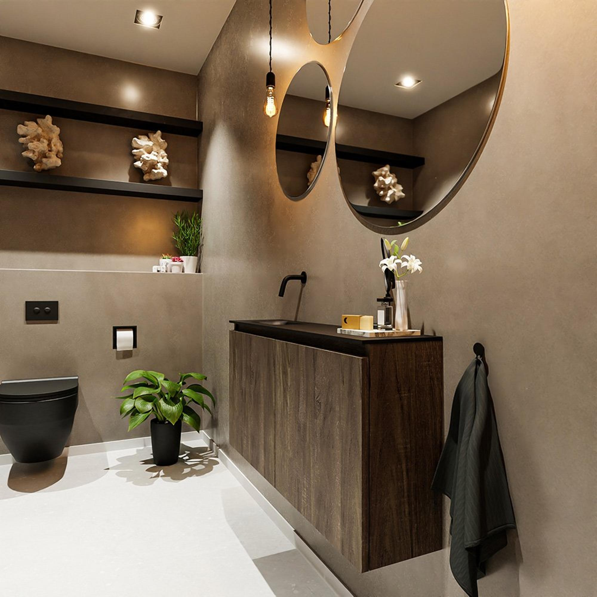 MONDIAZ TURE Fonteinset - 100x23x50cm - 0 kraangaten - 2 deuren - dark brown mat - Wasbak links - Solid Surface Zwart