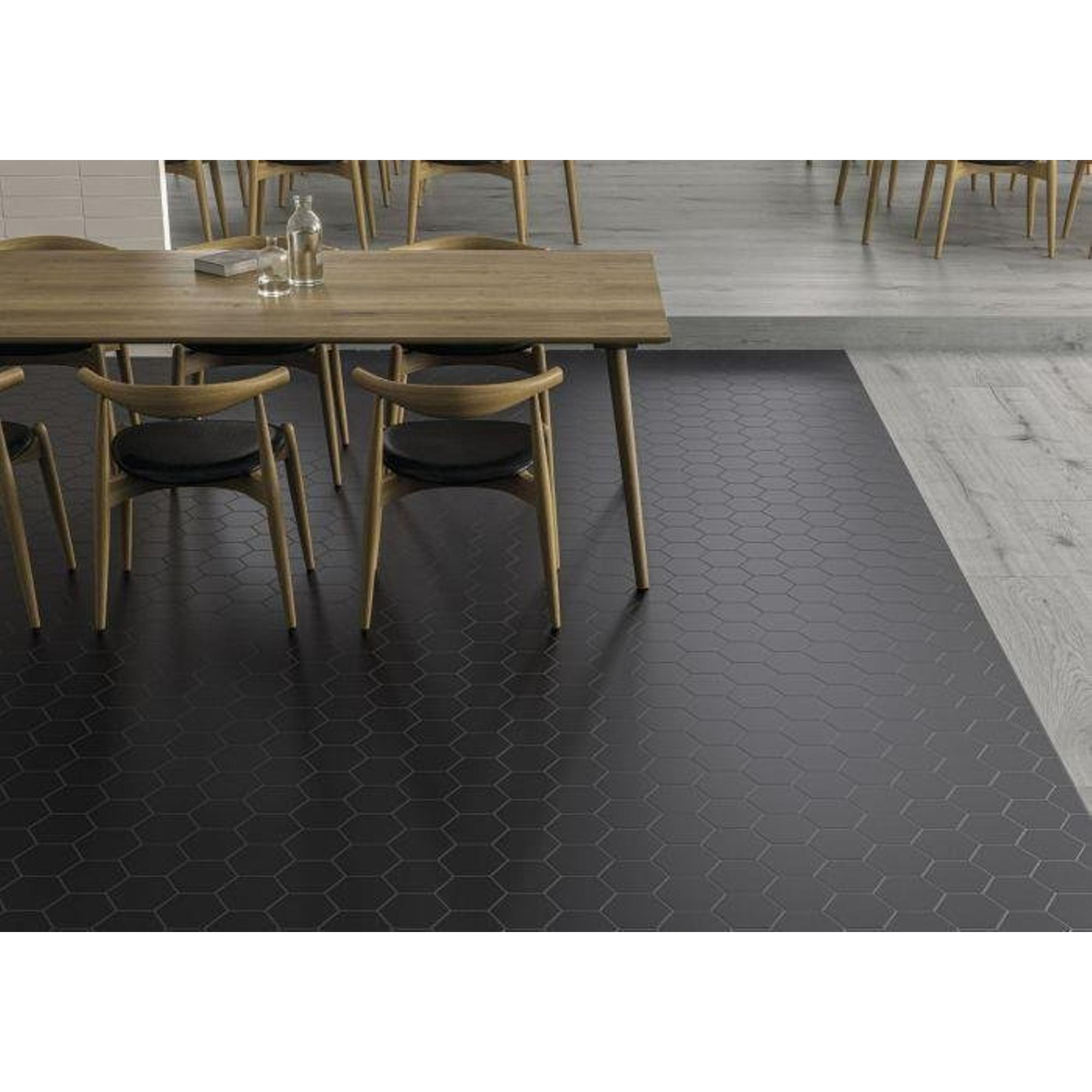 Deze tegel straalt een onmiskenbare schoonheid uit dankzij zijn diepe zwarte kleur en zeshoekige vorm. Het matte oppervlak voegt een subtiele textuur toe die de tegel een luxe uitstraling geeft. Of je nu een moderne of klassieke inrichting hebt, deze tegel voegt een vleugje elegantie toe aan elke ruimte.