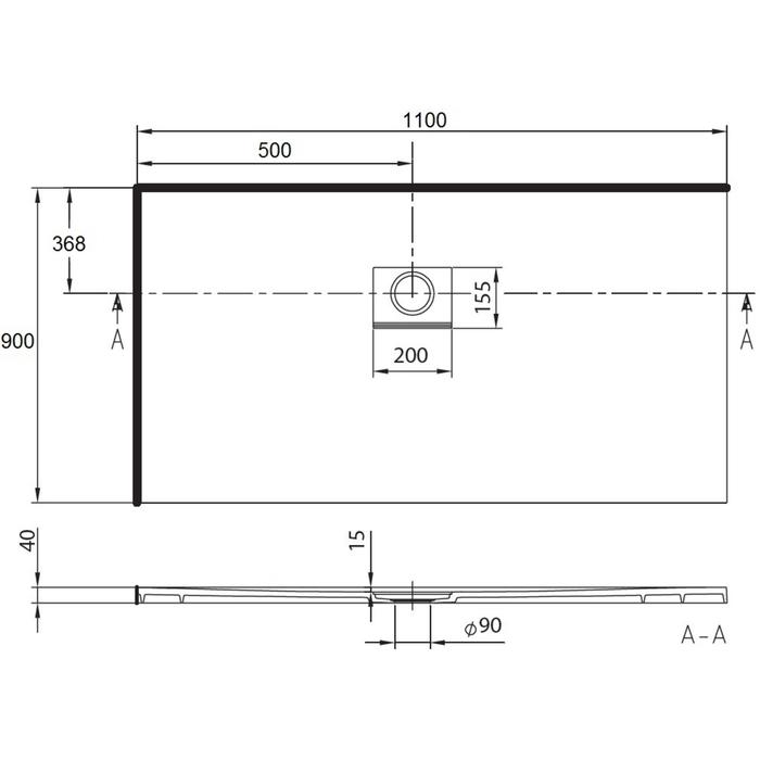 Villeroy & Boch Squaro Infinity kunststof douchebak quaryl rechthoekig 110x90x4cm z. onderstel v. alle installatietypen mat antraciet