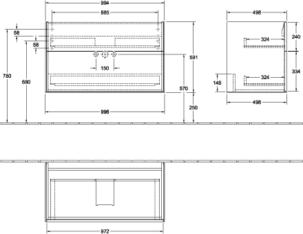 Villeroy & Boch Finion wastafelonderkast 99.6x59.1cm 2 lades Black matt