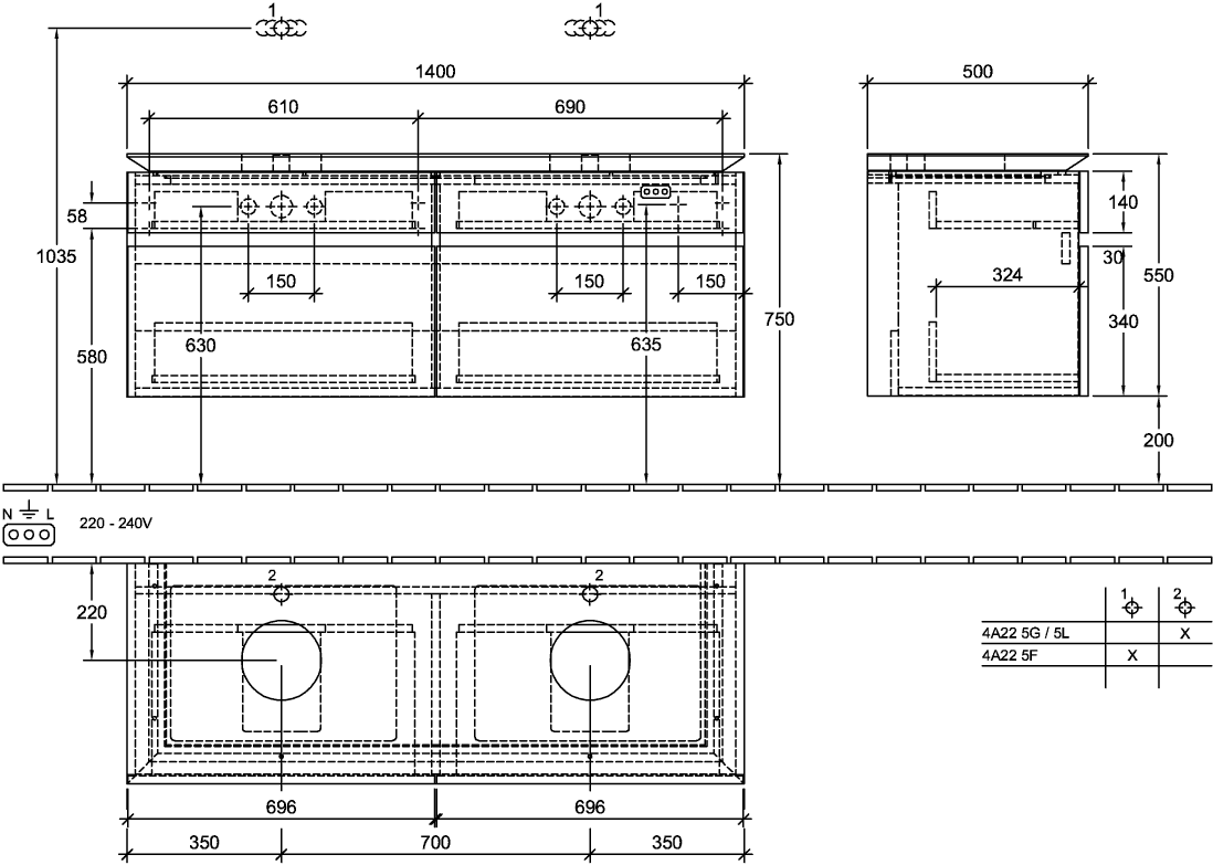 Villeroy & Boch Legato wastafelonderkast 140x55cm 4 lades Nordic oak
