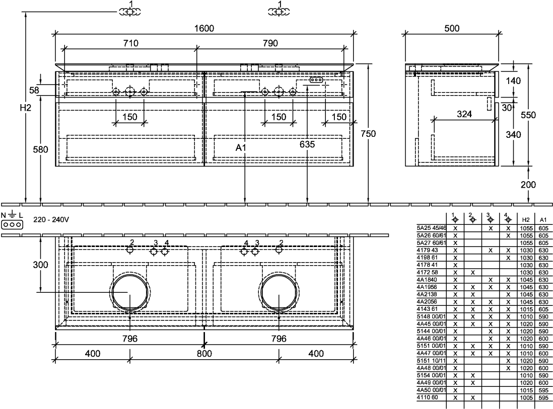 Villeroy & Boch Legato wastafelonderkast 160x55cm 4 lades Glans wit