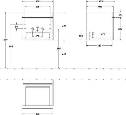 Villeroy & Boch Venticello wastafelonderkast 46.6x42cm 1 lades Impresso