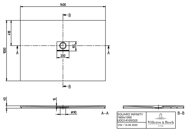 Villeroy & Boch Squaro infinity douchevloer 140x100cm grey
