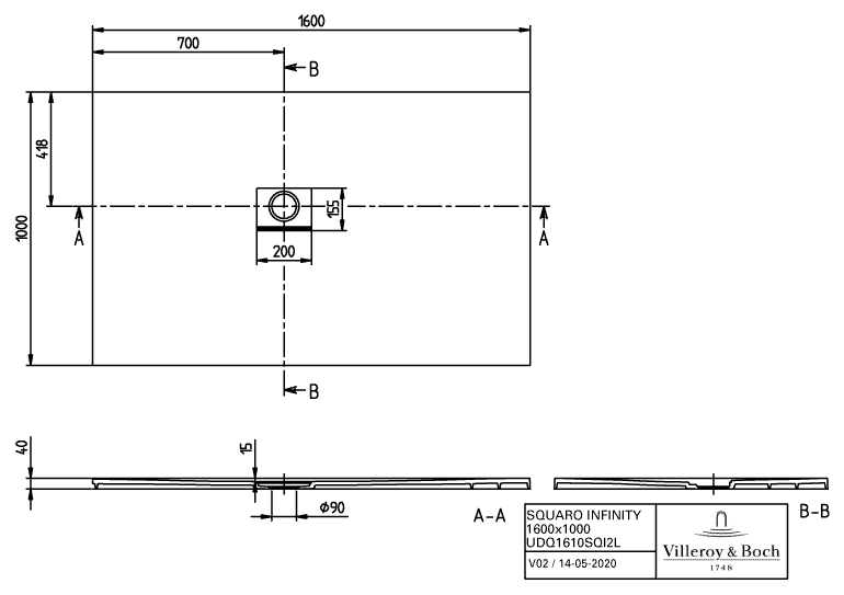 Villeroy & Boch Squaro infinity Douchebak
