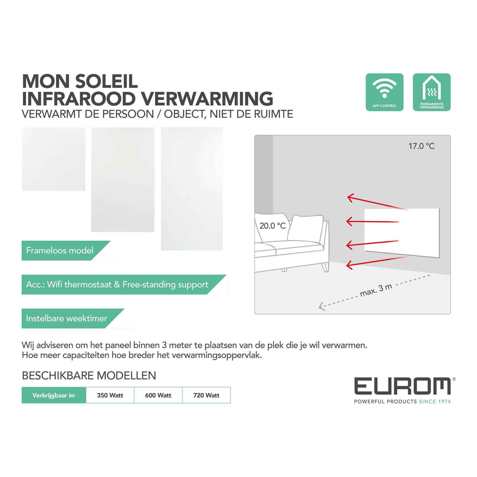 Eurom Mon Soleil 720 Wifi Infrarood Verwarming 120x60x5cm 720watt Metaal Wit